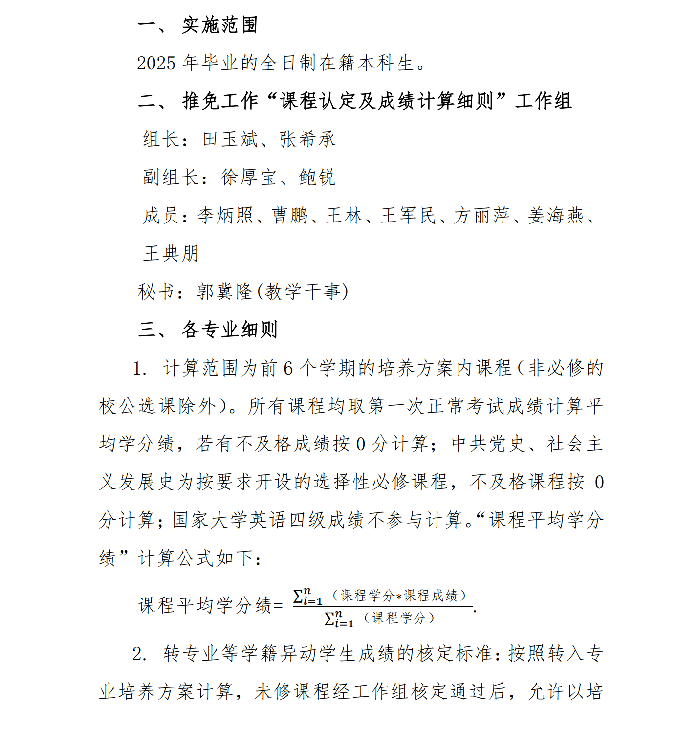 必威西汉姆联2025年推荐优秀应届本科毕业生免试攻读研究生工作课程认定及成绩计算细则