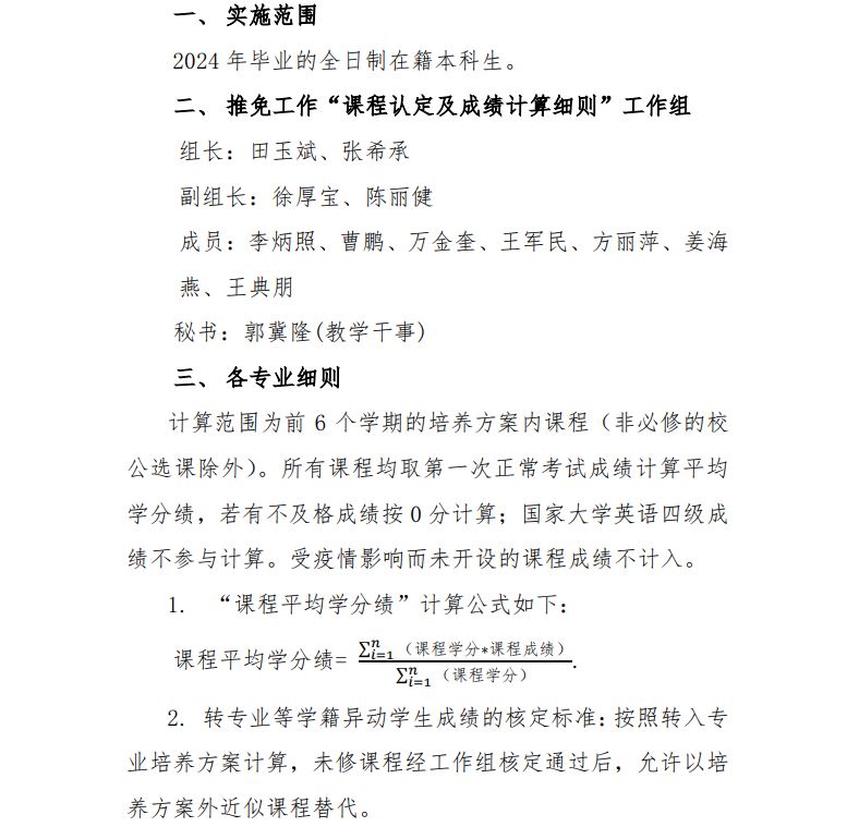 必威西汉姆联2024年推荐优秀应届本科毕业生免试攻读研究生工作课程认定及成绩计算细则