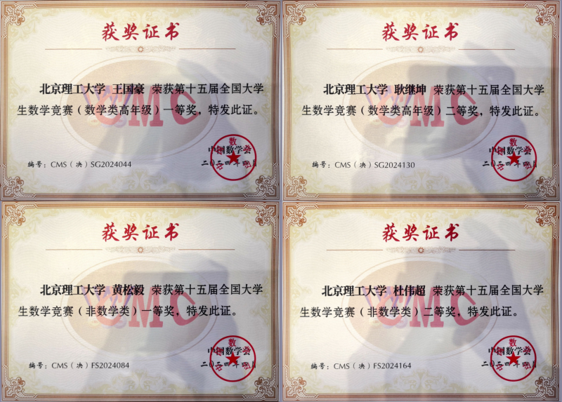第十五届全国大学生数学竞赛决赛于4月20日在山东大学举行,必威西汉姆联数学竞赛团队指导四名学生入围决赛,获得一等奖2项、二等奖2项的优异成绩。