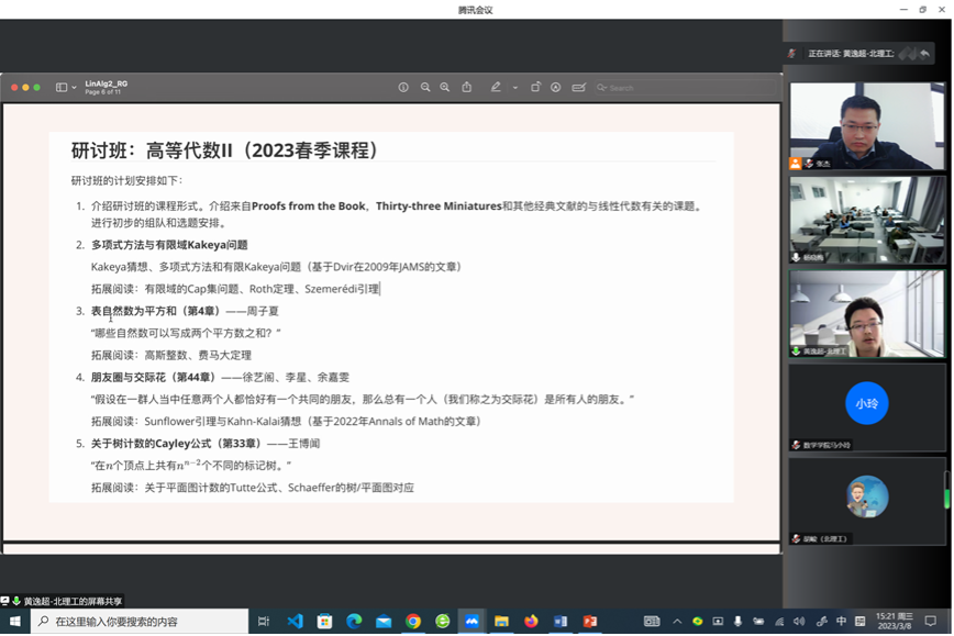 BETWAY必威张杰介绍了BETWAY必威“高等代数”课程开设情况,介绍了学校瞄准拔尖人才培养,开展强基班、大类班和普通班代数课不同教学计划。新疆大学课程负责人孟吉翔表示,希望加强双方老师教学互动交流,希望组织老师观摩北理工代数课研讨课堂。