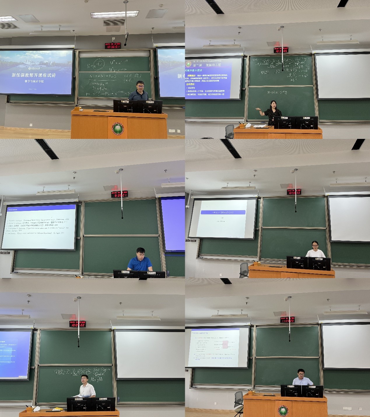 本次活动共有11名新任课教师参加并进行了试讲,试讲内容涉及高等数学、线性代数等全校学生的公共基础课,以及初等数论等专业课。每位老师试讲20分钟课程内容,专家对试讲教师分别进行点评、指导与交流。
