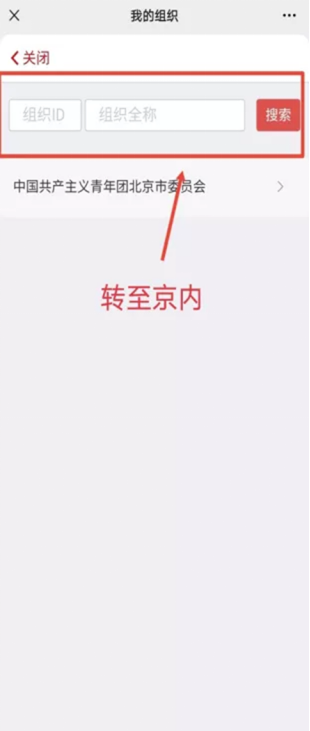 1.进入微信公众号“青春北京”,在“线上系统”中登录“北京共青团”系统,点击“我的组织”。