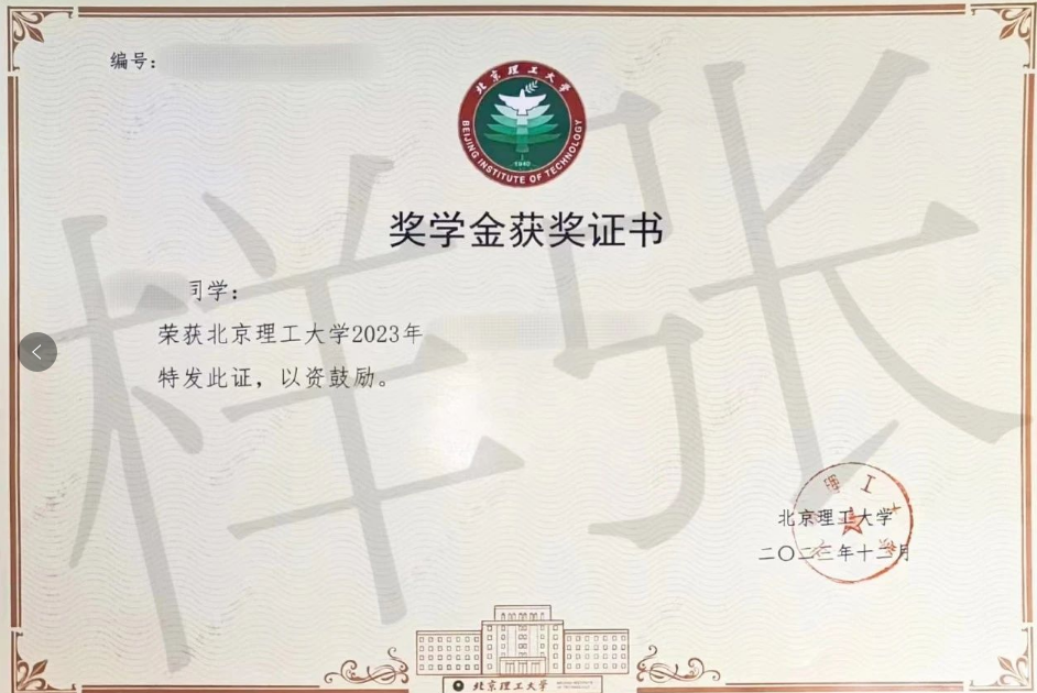 三、奖学金证书
