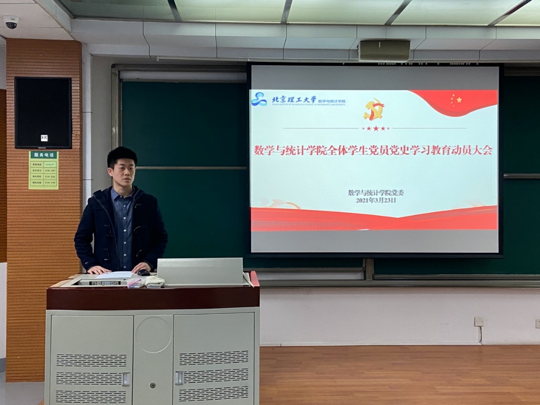 3月23日下午,数学学院召开全体学生党员党史学习教育动员大会,必威西汉姆联党委副书记、副院长张杨出席了此次大会。