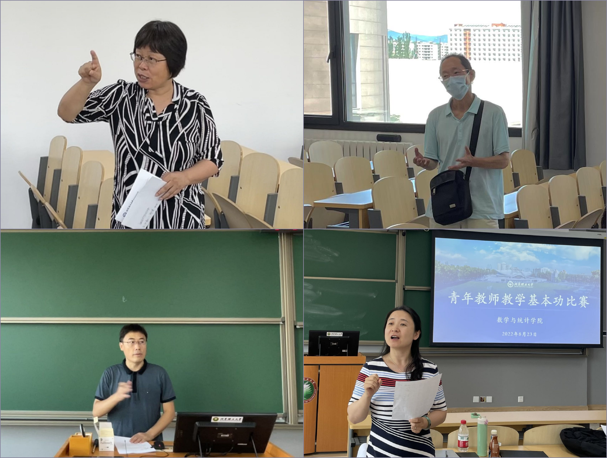 比赛由教学副院长徐厚宝老师主持,27位参赛教师逐一展示了各具特色的教学课堂,他们结合内容丰富的课件、工整的板书、新颖的教具,通过严谨缜密的公式推导、引人入胜的思政案例等形式,充分展示了青年教师们扎实的教学基本功底,呈现出了形式各异、丰富多彩的教学课堂。