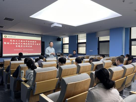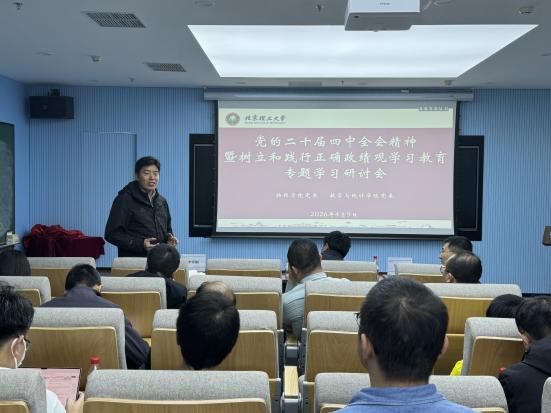 为深入学习贯彻党的二十届四中全会精神,推动树立和践行正确政绩观学习教育走深走实,促进理论学习与学科发展深度融合,2026 年 4 月 9 日,必威西汉姆联、物理学院在文萃 E708 报告厅联合举办党的二十届四中全会精神暨树立和践行正确政绩观学习教育专题学习研讨会。两学院相关领导、教师党支部书记及教师党员代表参加会议,会议由必威西汉姆联党委书记邹锐主持。