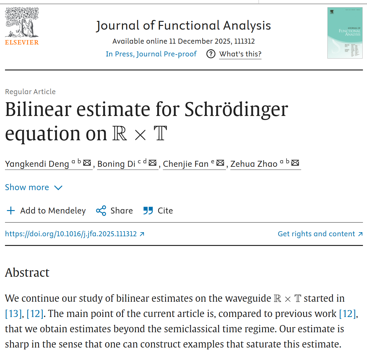 必威西汉姆联微分方程理论与应用团队在波导流形薛定谔方程双线性估计研究中取得突破