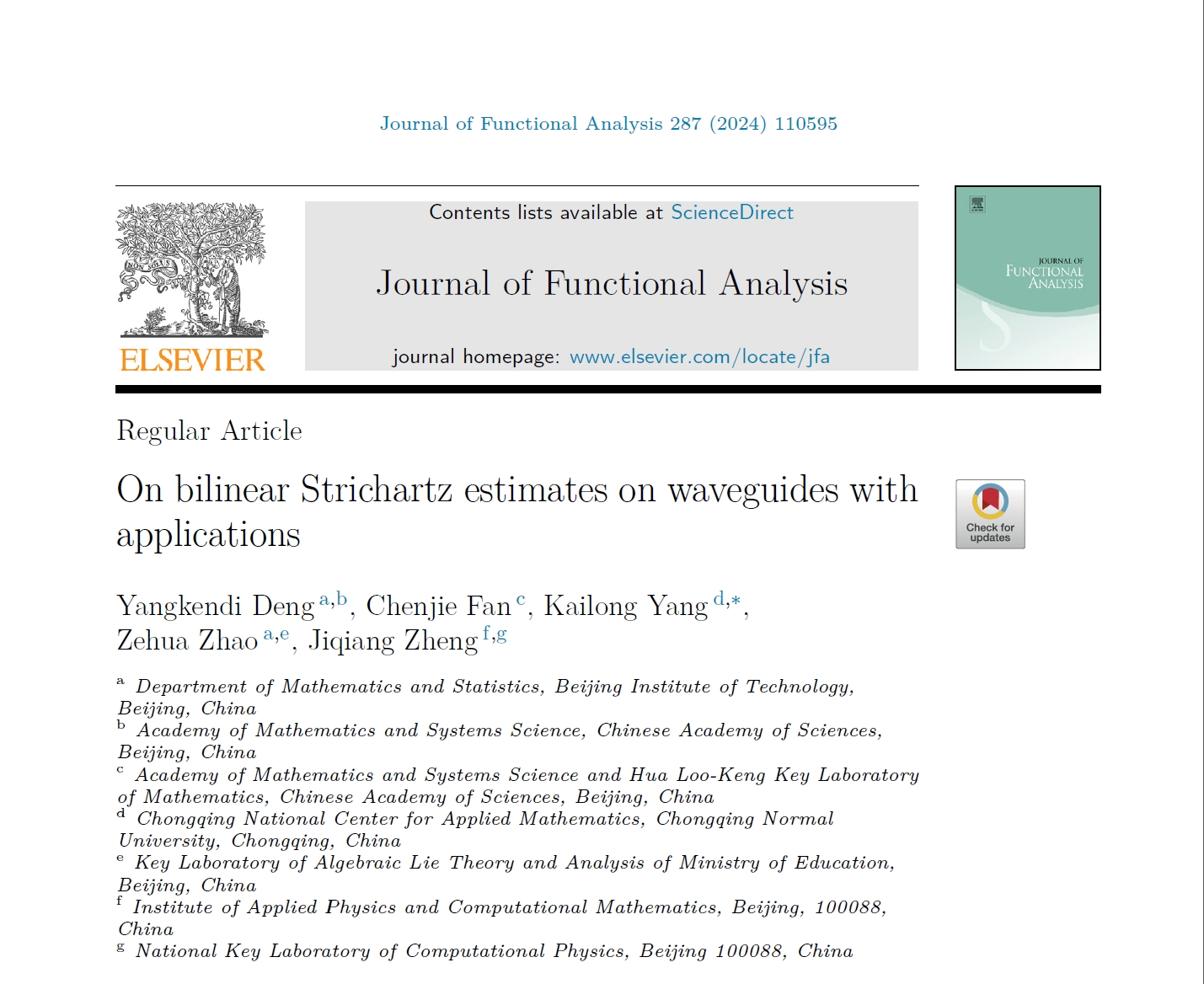 北理工教师在《Journal of Functional Analysis》发表调和分析方面的研究成果