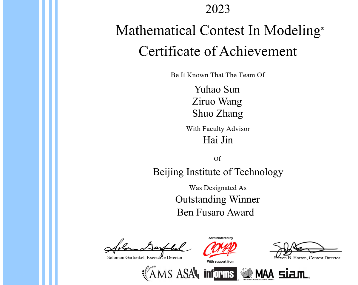 北理工学子在2023年美国大学生数学建模竞赛中再获佳绩